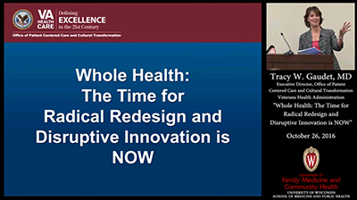 In her presentation https://www.youtube.com/watch?v=1jyxQPdPefw), she explained the ways the Whole Health model is currently being implemented at the VHA, and cited a New England Journal of Medicine article (https://www.ncbi.nlm.nih.gov/pubmed/26981931) affirming that the model is a key component of the VHA’s proposed future delivery system.